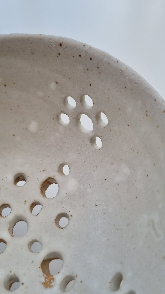 Perfect for garden harvests or market finds, they move seamlessly from sink to table—ideal for breakfasts, desserts, and impromptu gatherings. This image is representative; size, hole pattern, and glaze nuance vary—unique, just the way handmade things should be.