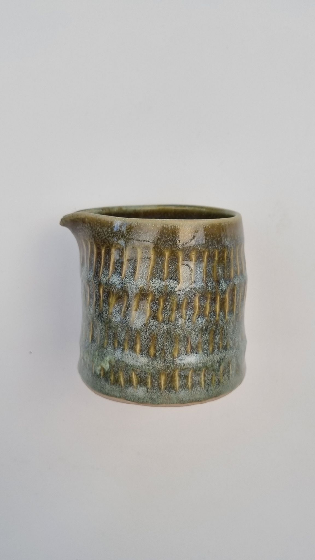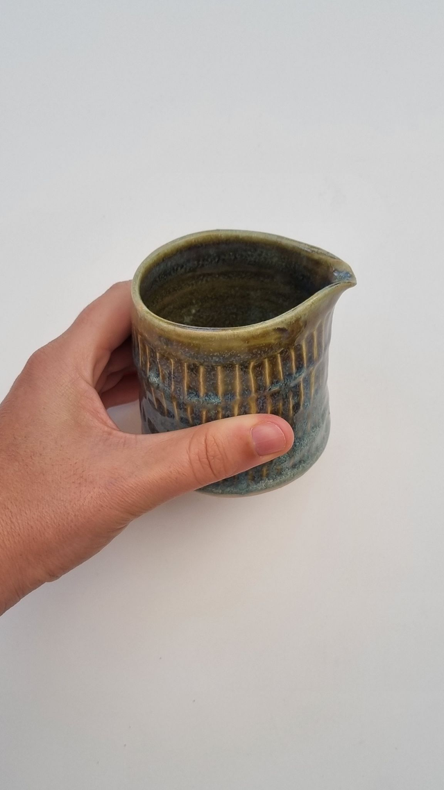 Made from durable stoneware and sized for milk or cream, it moves from kitchen to table with quiet ease—thoughtful as a small gift or a companion to daily rituals. This image is representative; size, carving patterns, and glaze character vary—unique, just the way handmade things should be.