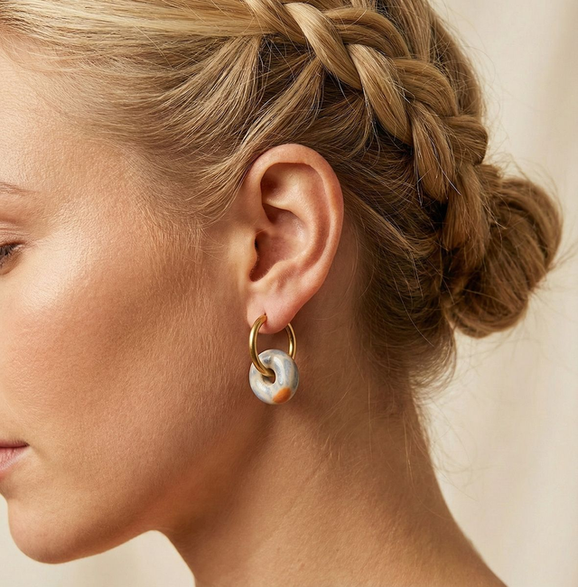 This edition features thicker golden hoops made from high-quality stainless steel with a gold finish, giving them a warm, elegant touch while enhancing their everyday wearability. The comfortable ear wire closure makes them effortless to put on and light enough to wear all day.